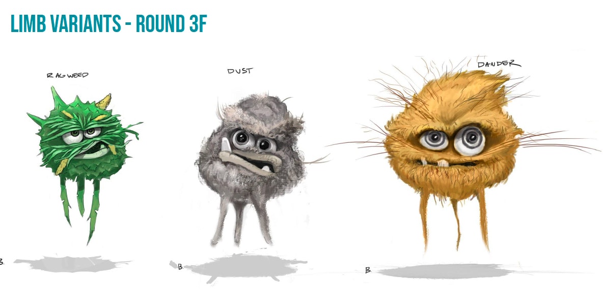 DDB approached us to bring character to the demo sequence for their recent spot. The puppets were in production for the spot but they wanted some microscopic 'cousins' that could create some light relief for the demo. There were three allergens - ragweed, dust and dander....here's where we came in: