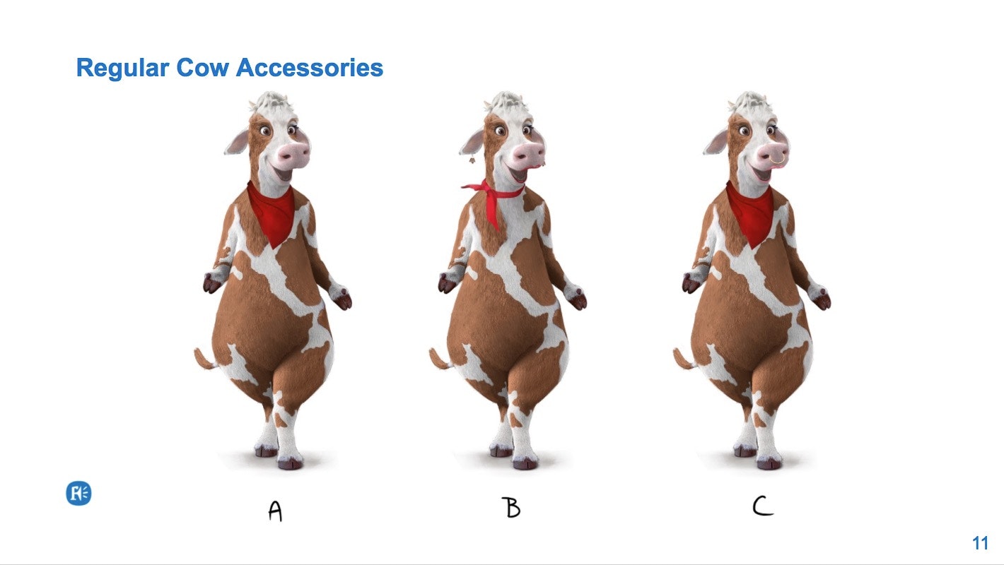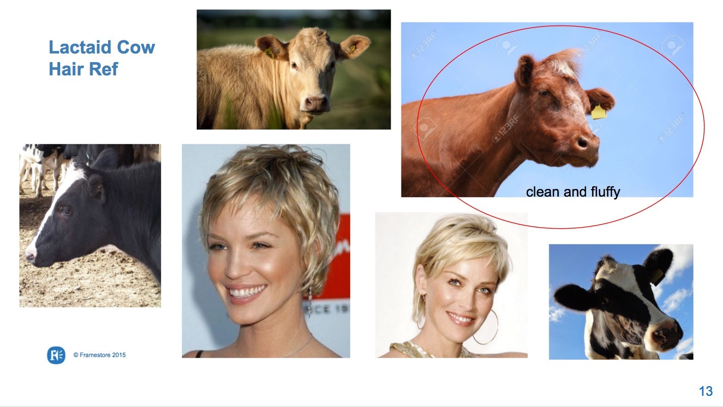 Whilst we were designing Regular Cow we ended up giving Lactaid Cow a little makeover in order to maintain a better contrast between them visually.